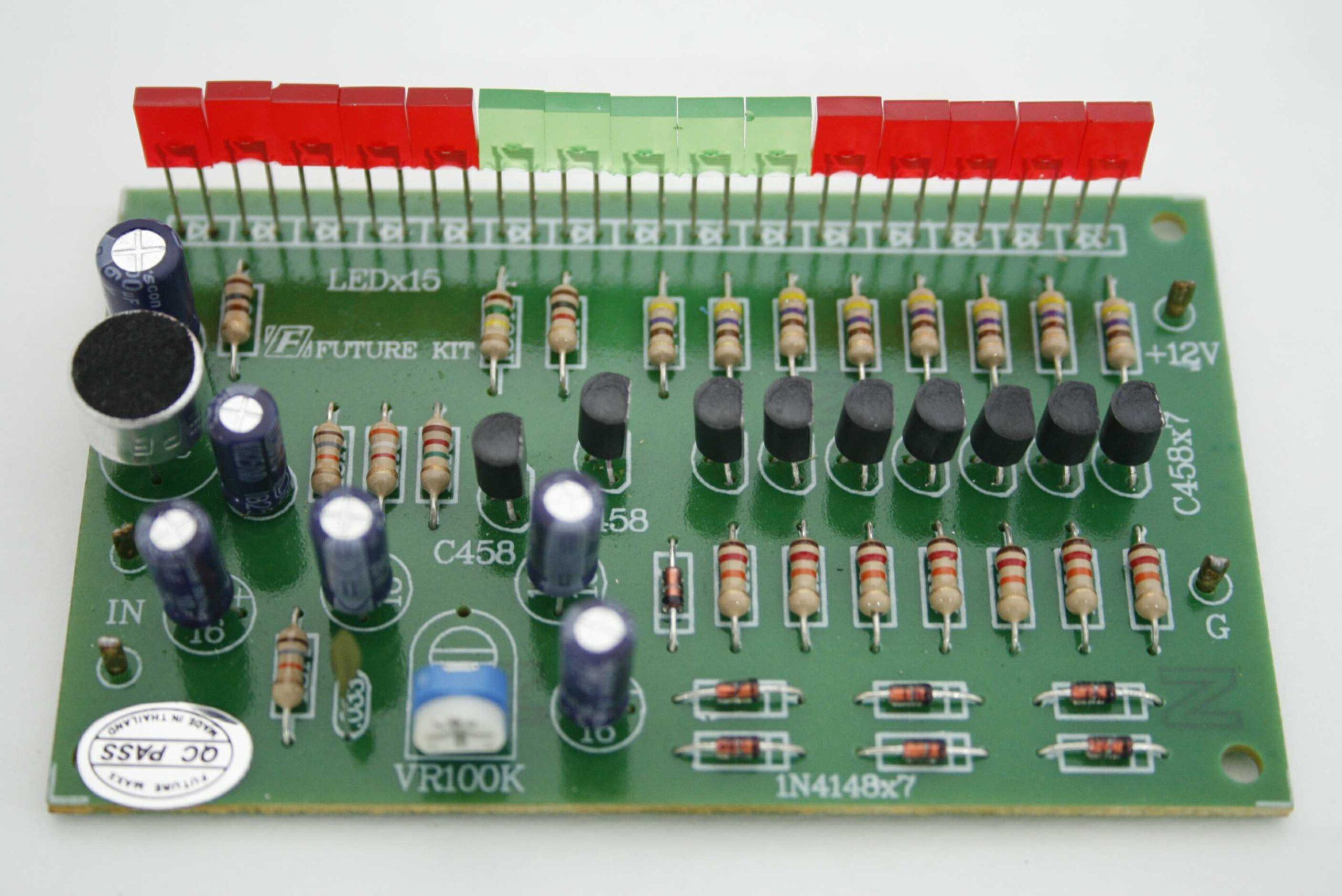 This VU meter is designed to be portable for measurement of sound levels anywhere in the listening field. The ELK00103 receives audio signals via an inbuilt microphone and displays their sound level on highly efficient 15 LEDs. The ELK00103 also be used as a party talking piece when it is built into Robot or Ghostbuster costumes as it follows the voice of the wearer or another guest. Substitute blue LEDs for dramatic effect.