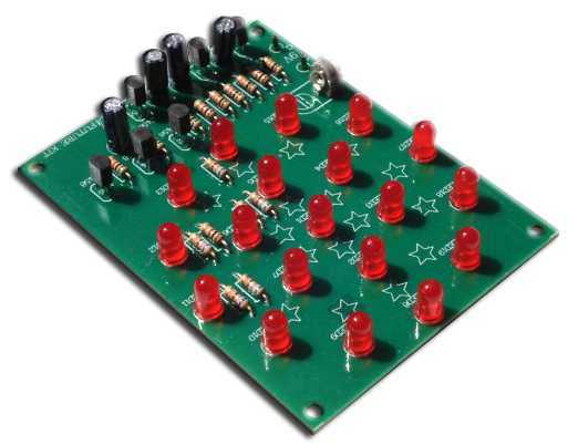 The 19 red LEDs of this flasher are arranged in three concentric circles which are addressed sequentially for a spectacular effect. LEDs of different colours may be substituted to give variety to these eye catching units in massed arrays.